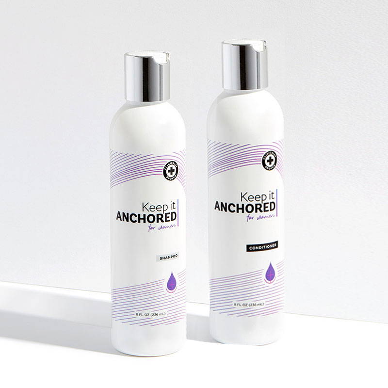 2-step kit prevents daily hair loss with 2x the HairAnchor blend. This kit includes a one-month supply of: