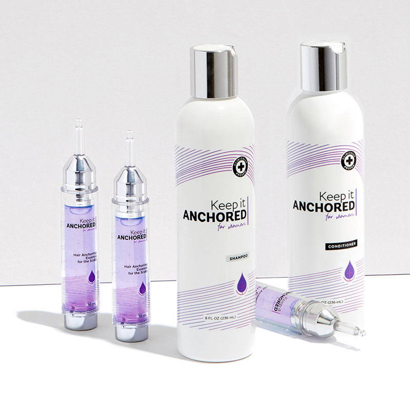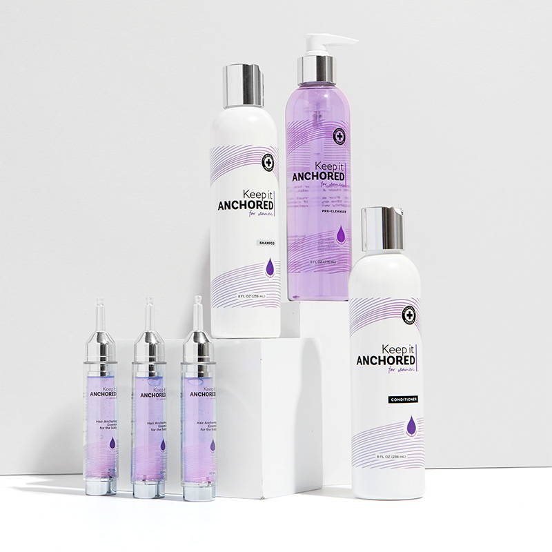 4-step kit is our most complete HairAnchoring system with all you need to get the most noticeable results and prevent daily hair loss. It includes a one-month supply of: